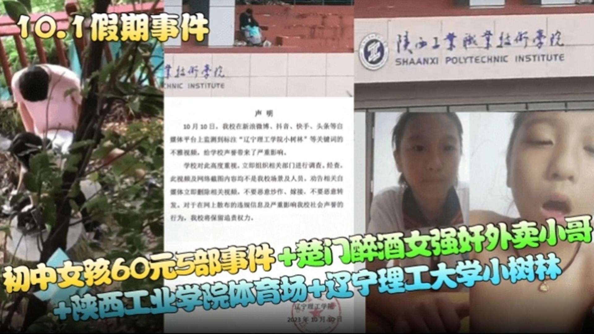 初中生女孩60元五部事件 楚门醉酒女强奸外卖小哥 陕西工业学院体育场 辽宁理工大学小树林事件大合集!